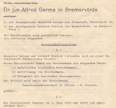 Gerhard und Heinrich machten sich am 1. Juli 1972 mit einem Ingenieurbüro in der Neuen Str. 18 selbständig. Für Hendrik und Tobias bleibt dieses Büro in ewiger Verbindung mit Cola und Katjes, die im nahe gelegenen Kiosk von Frau Weinert für den Papa und die Selbstversorgung gekauft wurden.